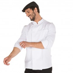 Chaqueta de cocina Velilla de manga larga con cuello tirilla y botones cruzados.