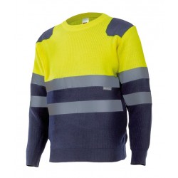 Jersey bicolor VELILLA de punto de alta visibilidad con cuello alto y cintas reflectantes en torso y mangas.