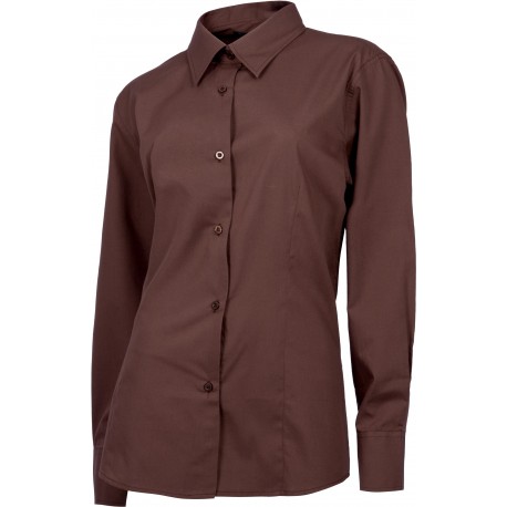 Camisa entallada para señora de cuello clásico y cierre central de botones. Manga larga con puño de botón. Espalda con canesú. Costuras reforzadas, bajo redondeado y botones al tono.