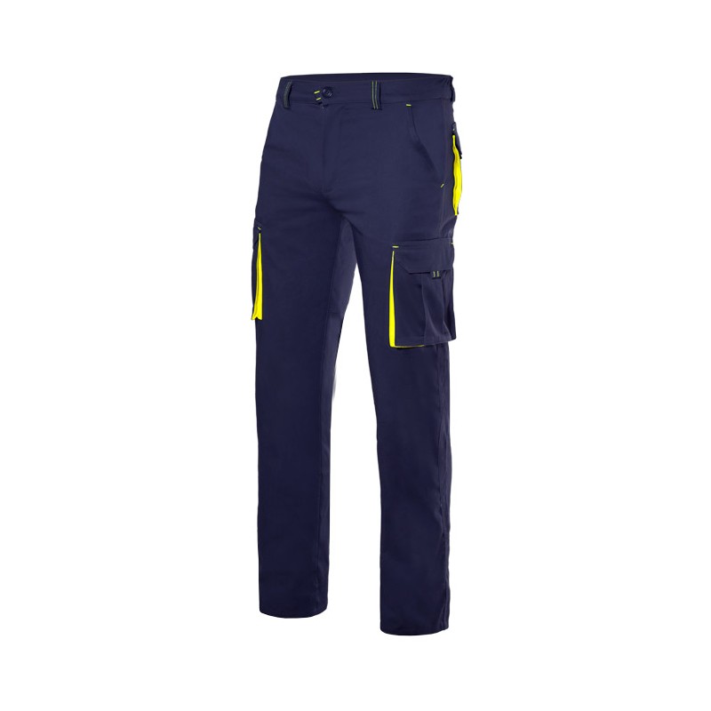 Pantalón stretch multibolsillos de 240gr/m2 con colores de contraste en fuelles, tiradores y presillas.