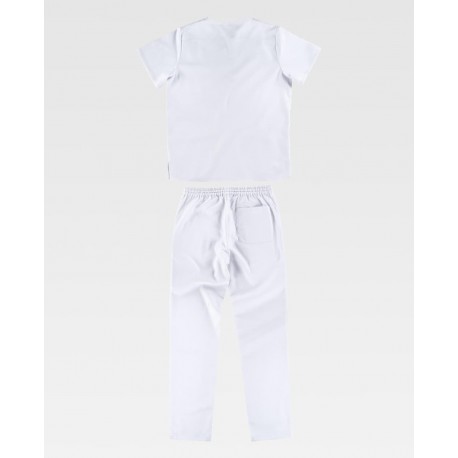 Conjunto sanitario WORKTEAM de casaca cuello pico y pantalón lavable a 65º.